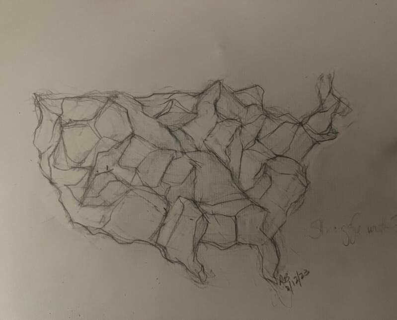 sketch - I dreamed of mountainous rocks on what might have been US