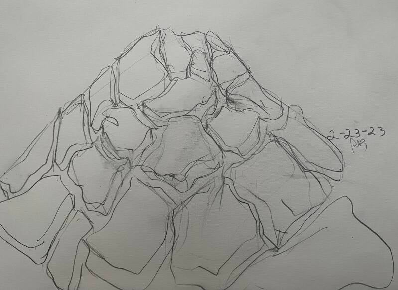 ROCK SKETCH PRACTICE- I will practice sketching rocks until i feel release to enter into the painting